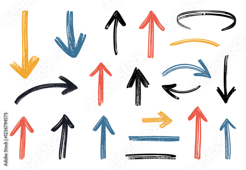 Abstract hand-drawn arrows set on a white background. brush drawing style. graphic elements. vector graphics.