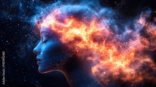 Abstract head with fire and smoke