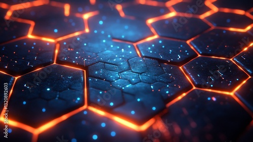 Abstract Hexagon Network Glowing Brightly Intense Blue Orange Light. AI Generated