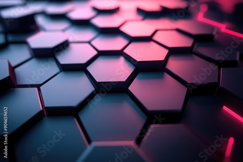 Abstract Hexagon Pattern with Neon Glowing Lines