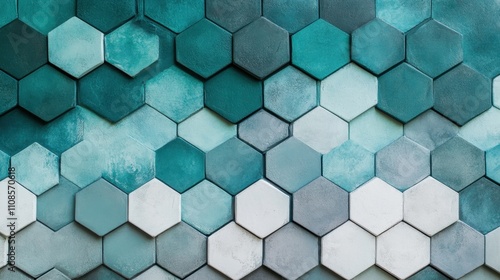 Abstract Hexagon Tile Pattern: Teal and Gray Geometric Wall Texture Background Image