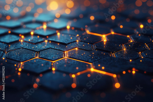 Abstract hexagonal grid glowing with orange light, futuristic technology concept.