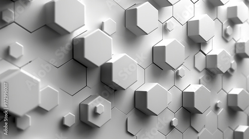 Abstract hexagonal grid pattern with overlapping and interlocking shapes, creating a dynamic and visually