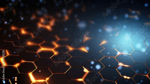 Abstract hexagonal pattern with glowing edges, creating a futuristic and technological feel.