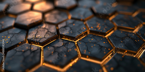 Abstract hexagonal pattern with glowing highlights, Geometric honeycomb design with metallic finish