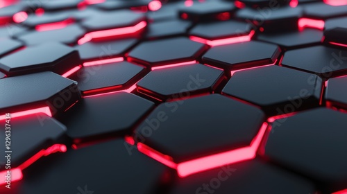 Abstract Hexagonal Pattern with Neon Red Glow on Dark Background