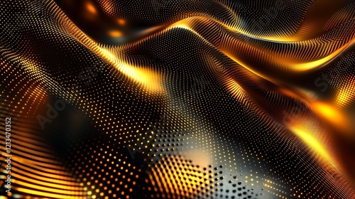 Abstract high-tech digital technology with metallic plates and glowing particles creating dynamic patterns