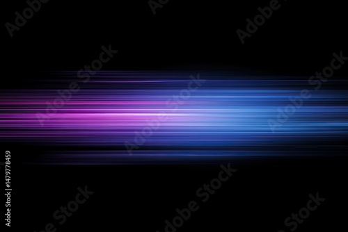 Abstract horizontal streaks of vibrant purple and blue light against a black background. These dynamic lines create a sense of motion and speed