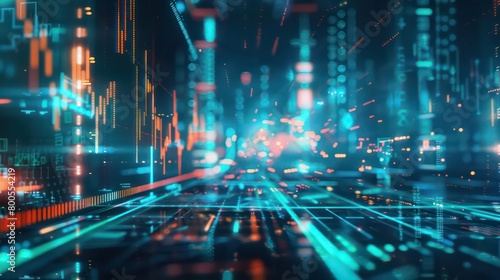 abstract illustration background with digital encryption patterns and financial market graphics, very modern and hi-tech