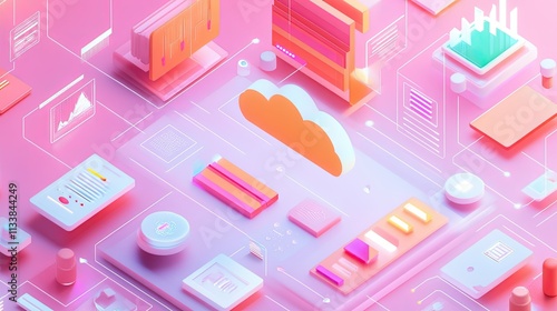 Abstract Illustration of Cloud Computing with Colorful Design Elements