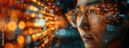 Abstract image of a data scientist merging big data visualizations with quantum computing schematics