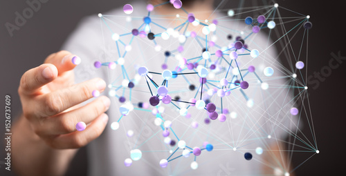 Abstract image of a hand holding a network of interconnected nodes, representing global connections and data.