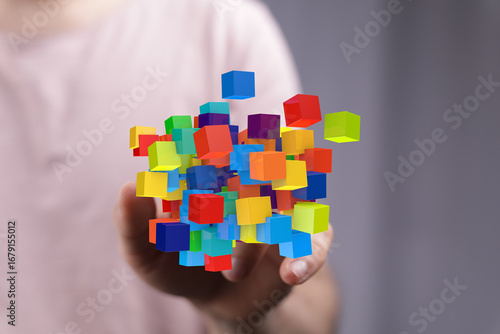 Abstract image of colorful blocks symbolizing data, technology, and creative solutions.
