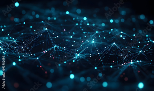 Abstract image on a dark background, showcasing interconnected data points that represent digital transformation and big data. Advanced AI driven network systems for a high tech future, generative ai