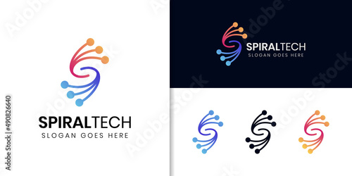 abstract initial letter S technology logo for spiral tech system vector icon symbol