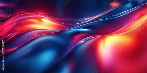 Abstract Iridescent Liquid Waves in Neon Blue and Red Shiny Metallic Fluid Design