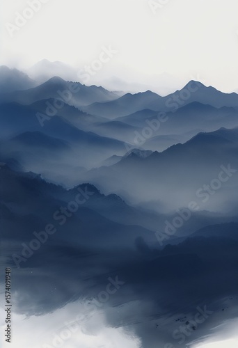 Abstract Landscape In Traditional Chinese Ink Art Style