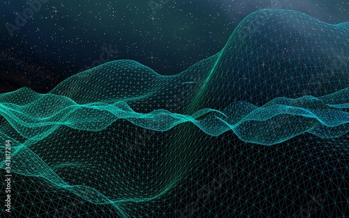 Abstract landscape on a dark background. Cyberspace grid. hi tech network. Outer space. Starry outer space texture. 3D illustration