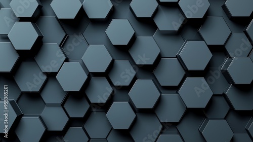 Abstract Layered Hexagonal Pattern in Dark Monochromatic Design