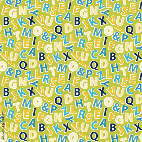 Abstract letters seamless pattern.Vector Alphabet seamless vector pattern isolated on a green background