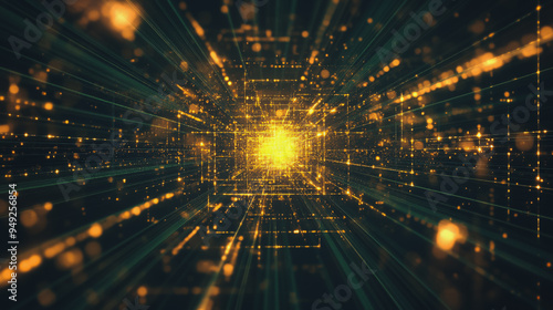 Abstract light explosion and network points, dot, earth's surface, digital background Innovation network points Earth's surface wave background digital wave information technology background