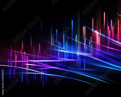 Abstract light streaks, dynamic energy, dark background, technology concept