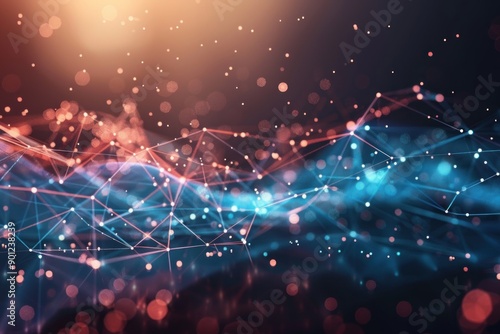 Abstract Lines and dots connect the background. Digital data technology connection and the concept