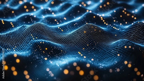 Abstract linked dots and lines. Representation of AI technology, digital data flow motion. Concept of communication and technology network with moving lines and dots. 3D rendering.