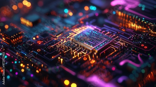 Abstract Microchip Circuitry: A Glowing Digital Landscape