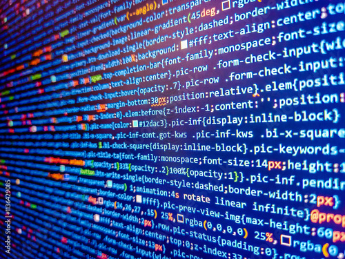 Abstract modern virtual computer script. Big data and ai artificial intelligence cyber network. Programmer developer screen concept. Can be used as background. Abstract computer script code.