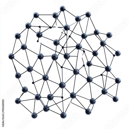 Abstract molecular structure with interconnected black spheres and lines, symbolizing connections and complexity.