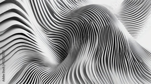 Abstract Monochrome Curving Stripes - 3D Rendered, Design, Architecture, Pattern, Minimalism