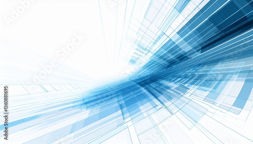 Abstract motion geometric shiny blue overlapping technology concept perspective on white background with copy space. Generated image