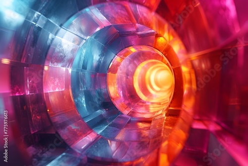 Abstract multicolored round tunnel with light at the end