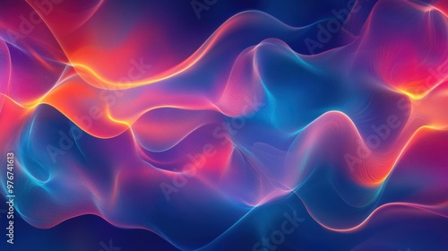 Abstract multicolored wavy lines in dynamic motion on a dark background