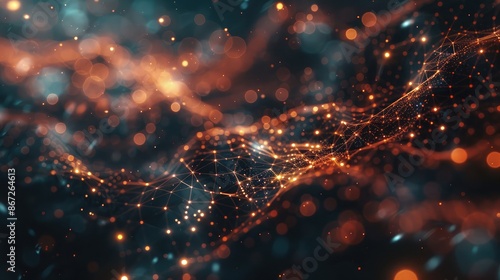 Abstract nanotechnology concept with microscopic particles and glowing lines.