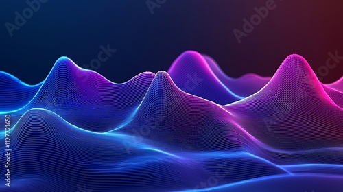 Abstract neon blue and pink digital wave landscape.