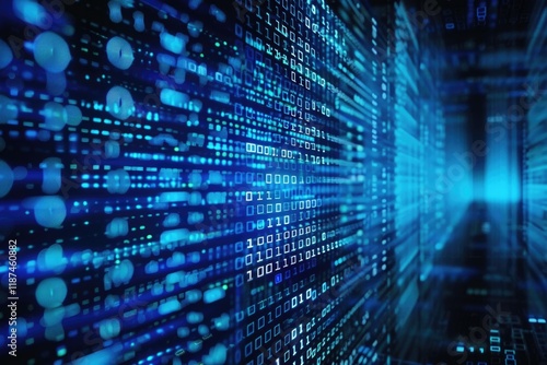 Abstract neon blue cyber binary flowing background