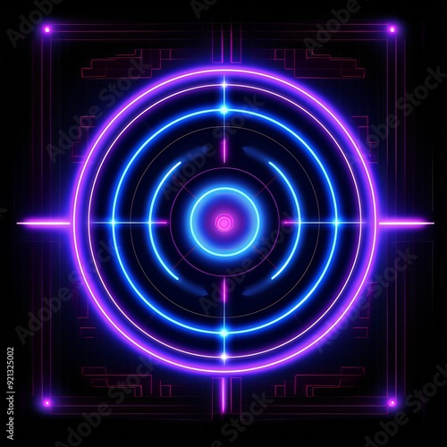 Abstract neon circular pattern with glowing concentric circles