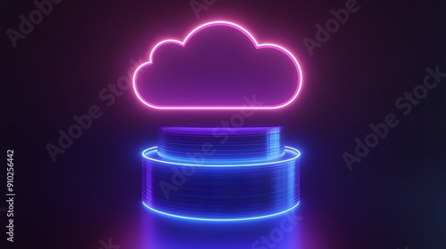 Abstract neon cloud and server representation in dark background signifying digital storage and cloud computing technologies.