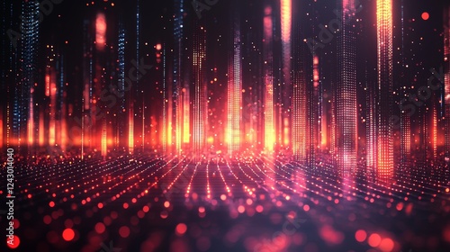 Abstract neon lights in a 3D technology background, featuring an empty space scene with a spotlight during a dark night. This setting is perfect for a virtual reality, cyber futuristic sci-fi scene,