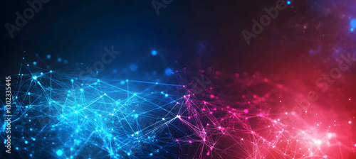 Abstract network background with glowing nodes and lines, connecting information and data in a vibrant and dynamic display of technology integration