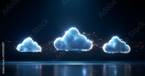 Abstract Network Cloud Computing Concept with Glowing Connected Clouds