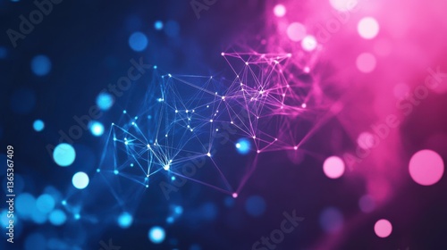 Abstract Network Connection Pink & Blue Digital Node Plexus Background