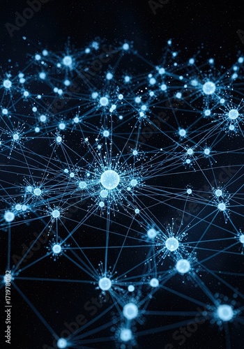 Abstract network connection structure, blue electronic neural plexus background, artificial intelligence and engineering concept