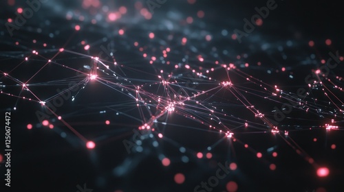Abstract Network Connection with Glowing Nodes and Data Transmission