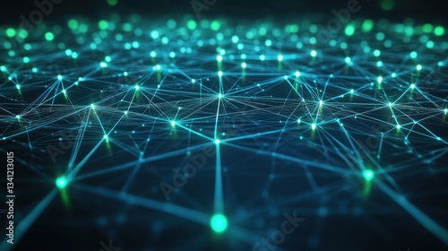 Abstract network, glowing nodes, interconnected lines. Possible use Technology background, data visualization