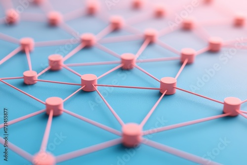 Abstract network linking nodes on a blue background, symbolizing global digital connectivity, data exchange, and technology