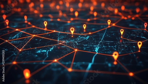 Abstract Network Map with Glowing Orange and Blue Points