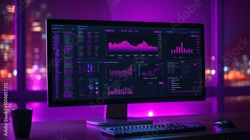 abstract network monitoring dashboard on a computer monitor showcasing real-time data analytics, graphs, and system health indicators, highlighting efficiency and performance management